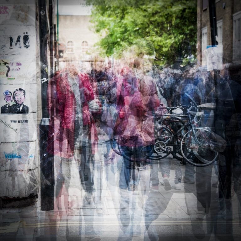 Frente a la fotografía estática o posada, el artista apuesta por la imagen en tránsito, por la captura del movimiento como materia expresiva. De este modo, los retratos se disuelven, las figuras se desdibujan y los individuos se tornan etéreos, diluyéndose en una atmósfera común donde emerge la noción de colectividad. El espacio y el tiempo adquieren un papel central. La ciudad se configura como un escenario frente a la naturaleza efímera de quienes los transitan. La obra reafirma la persistencia del espacio, pero también evidencia cómo cada paso, cada gesto, cada cruce momentáneo contribuye a resignificarlo. Cada lugar se revela así como una ciudad palimpsesto, un territorio de huellas superpuestas que narra las múltiples formas de habitarla.