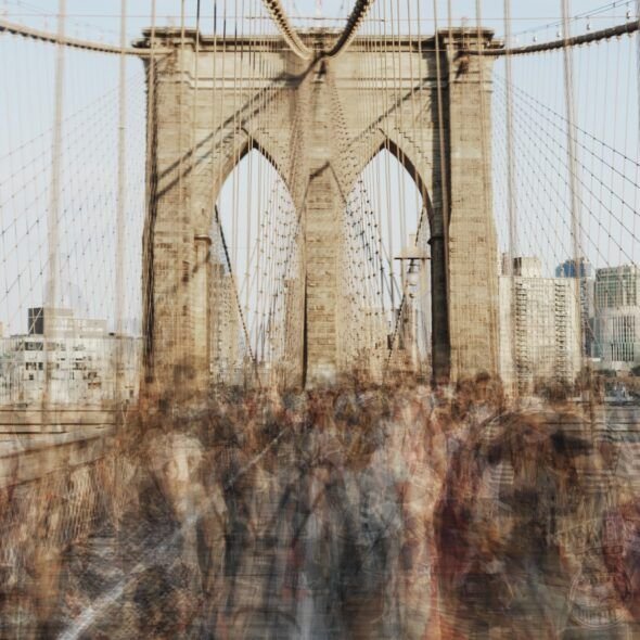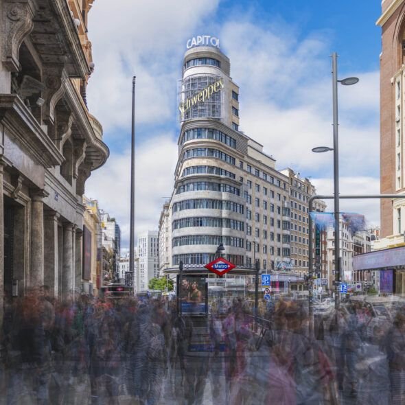 Frente a la fotografía estática o posada, el artista apuesta por la imagen en tránsito, por la captura del movimiento como materia expresiva. De este modo, los retratos se disuelven, las figuras se desdibujan y los individuos se tornan etéreos, diluyéndose en una atmósfera común donde emerge la noción de colectividad. El espacio y el tiempo adquieren un papel central. La ciudad se configura como un escenario frente a la naturaleza efímera de quienes los transitan. La obra reafirma la persistencia del espacio, pero también evidencia cómo cada paso, cada gesto, cada cruce momentáneo contribuye a resignificarlo. Cada lugar se revela así como una ciudad palimpsesto, un territorio de huellas superpuestas que narra las múltiples formas de habitarla.